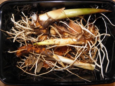 De wortelstokken zijn zeer zetmeelrijk en een bron van voedsel. De wortels worden gebakken in een open vuur (hete as of kolen), waarbij de wortelbast als een soort bescherming dient tegen het vuur. Na tien tot twintig minuten kan de wortel worden opengescheurd en de zetmeel rijke vezels eruit worden gehaald. De vezels zijn direct eetbaar.